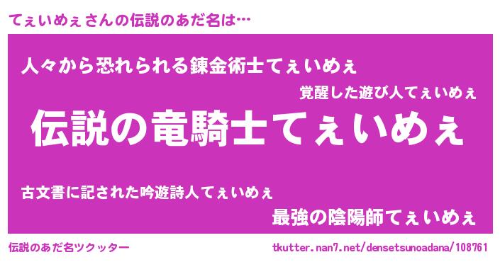 | ヒーロー風カッコイイあだ名 | 『ウルトラ戦士テェイメェ』 |