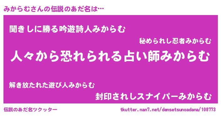 | ヒーロー風カッコイイあだ名 | 『正義の使者みからむ』『ネオミカラム』 |