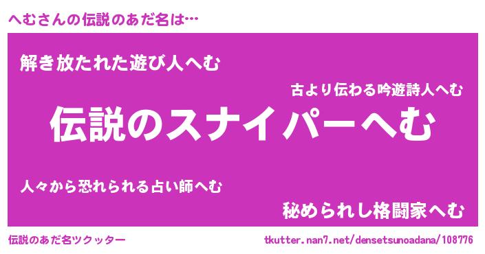 | 胡散臭い通販商品みたいなあだ名 | 『必ず成功する霊験あらたかなお札…その名も「へむ」』 |