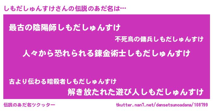 | ヒーロー風カッコイイあだ名 | 『友情の使者しもだしゅんすけ』 |