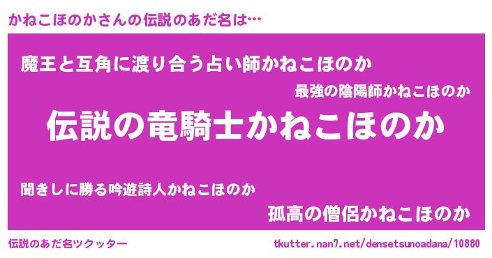 | ヒーロー風カッコイイあだ名 | 『仮面カネダー』『スーパーカネコホノカ』 |