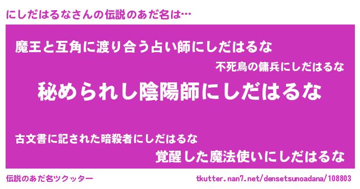 | ヒーロー風カッコイイあだ名 | 『ウルトラにしだはるなマン』 |