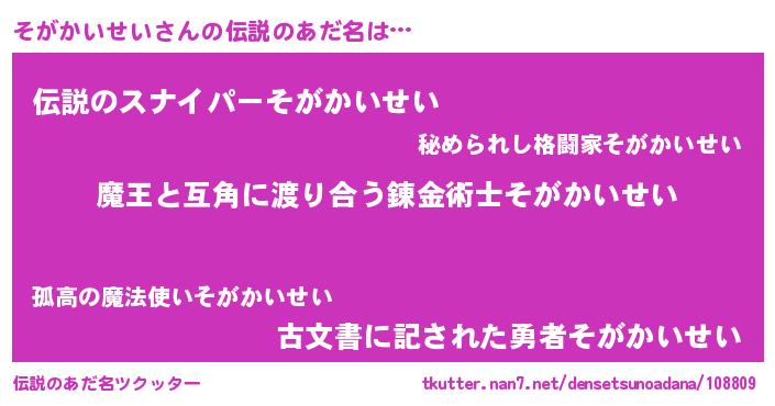 | ヒーロー風カッコイイあだ名 | 『愛の使者そがかいせい』『仮面ソガダー』 |