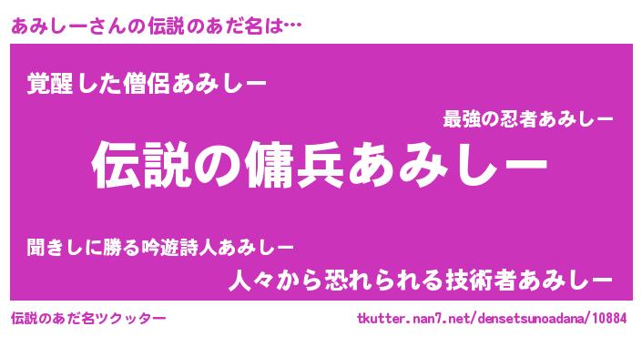 | ヒーロー風カッコイイあだ名 | 『スーパーアミシー』『究極戦士アミシー』 |