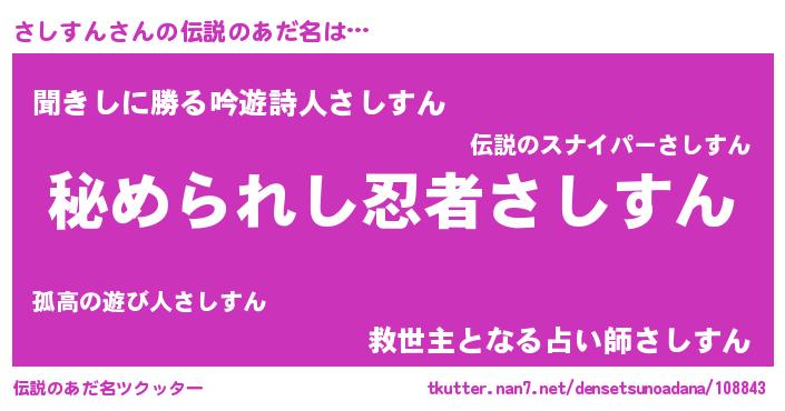 | ファンタジー風あだ名 | 『エターナルサシスンー』『ゼサシトゥ』 |