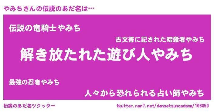 | 意味不明あだ名 | 『自称やみち』『住所不定無職やみち(4歳)』 |