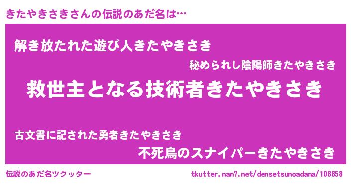 | 意味不明あだ名 | 『自称きたやきさき』 |