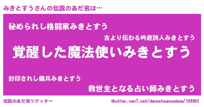 | 意味不明あだ名 | 『とにかく怪しいみきとすう』 |
