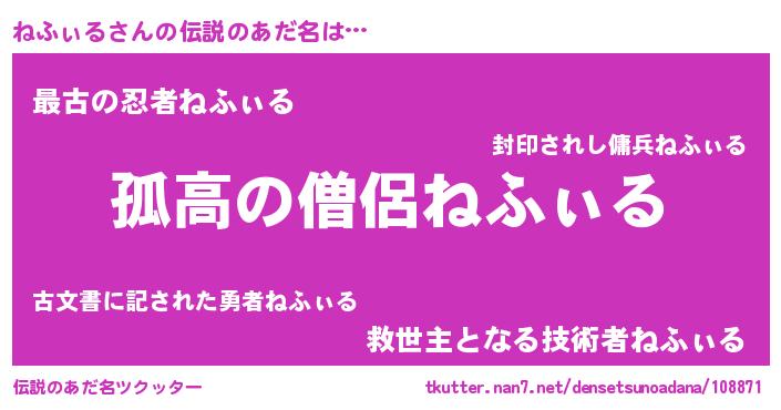 | 意味不明あだ名 | 『住所不定無職ねふぃる(43歳)』 |