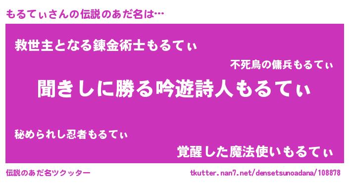 | 意味不明あだ名 | 『自称もるてぃ』『永久保存もるてぃ』 |