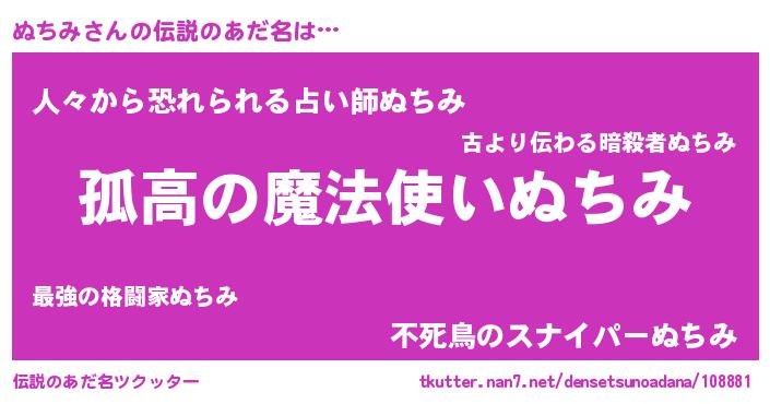 | 男性向けラノベタイトル風あだ名 | 『ダンジョンにぬちみを求めるのは間違っているだろうか』 |