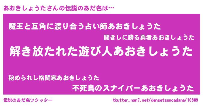 | ポケモン風あだ名 | 『ヒアオキショウタ』『アックウザ』 |