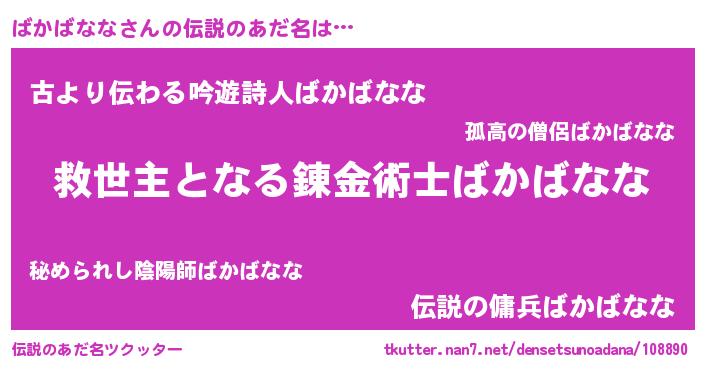 | 意味不明あだ名 | 『自称ばかばなな』『永久保存ばかばなな』 |