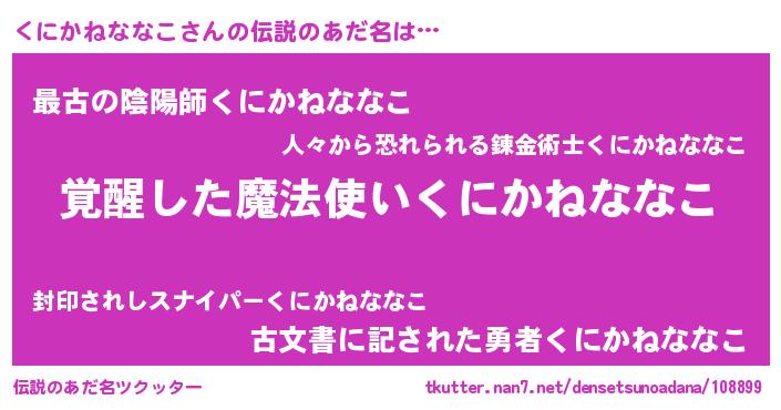 | ヒーロー風カッコイイあだ名 | 『幻影騎士クニ』『ネオクニカネナナコ』 |