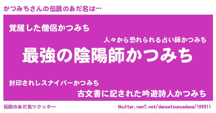 | ファンタジー風あだ名 | 『エターナルカツミチー』『ゼカツトゥ』 |