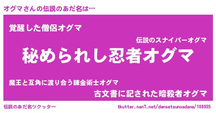 | 意味不明あだ名 | 『住所不定無職オグマ(39歳)』『自称オグマ』 |
