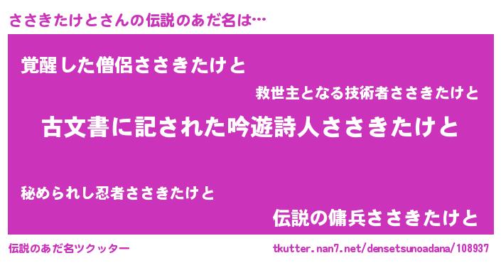 | 意味不明あだ名 | 『永久保存ささきたけと』 |