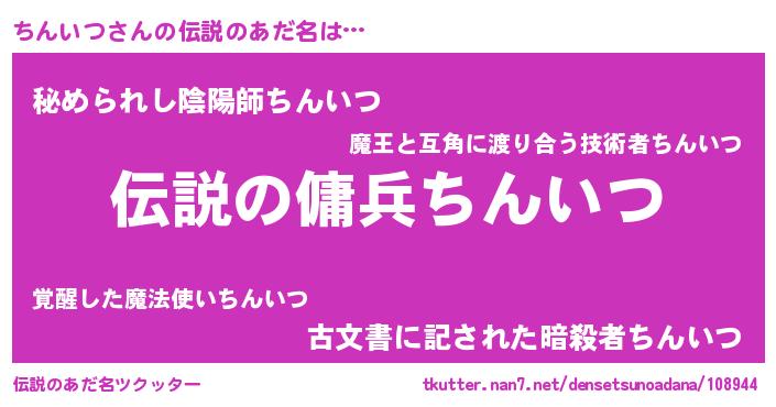 | 男性向けラノベタイトル風あだ名 | 『ちんいつの憂鬱』 |