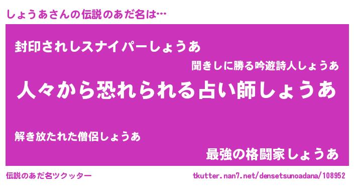 | ヒーロー風カッコイイあだ名 | 『正義の使者しょうあ』『仮面ショダー』 |