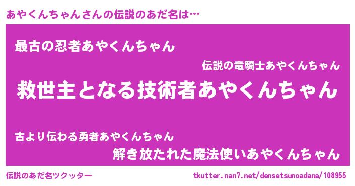 | ヒーロー風カッコイイあだ名 | 『慈愛の使者あやくんちゃん』 |
