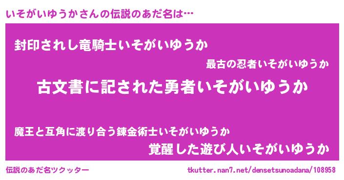 | 意味不明あだ名 | 『永久保存いそがいゆうか』 |