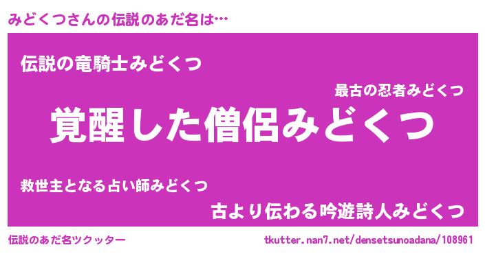 | 意味不明あだ名 | 『住所不定無職みどくつ(65歳)』 |