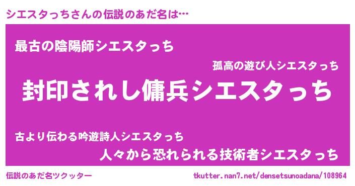 | 胡散臭い通販商品みたいなあだ名 | 『億万長者になれる水晶球…その名も「シエスタっち」』 |