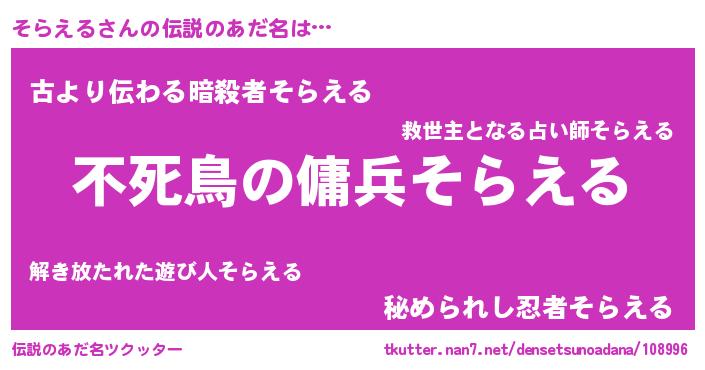 | ヒーロー風カッコイイあだ名 | 『スーパーソラエル』『究極戦士ソラエル』 |
