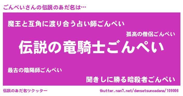 | 料理風あだ名 | 『栗とごんぺいのマフィン』 |