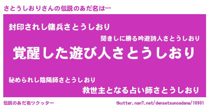 | ヒーロー風カッコイイあだ名 | 『幻影騎士サト』『スーパーサトウシオリ』 |