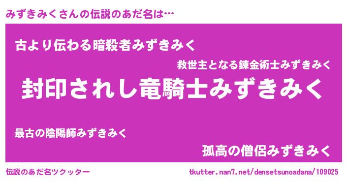 | ヒーロー風カッコイイあだ名 | 『スーパーミズキミク』『ネオミズキミク』 |