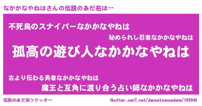| ポケモン風あだ名 | 『ヒナカカナヤネハ』『ナカセウス』 |