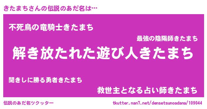 | ヒーロー風カッコイイあだ名 | 『幻影騎士キタ』『最強戦士キタマチ』 |