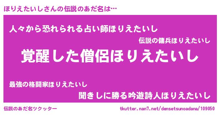 | 意味不明あだ名 | 『とにかく怪しいほりえたいし』 |