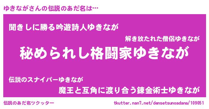 | 意味不明あだ名 | 『ゆきながフォーエバー』 |