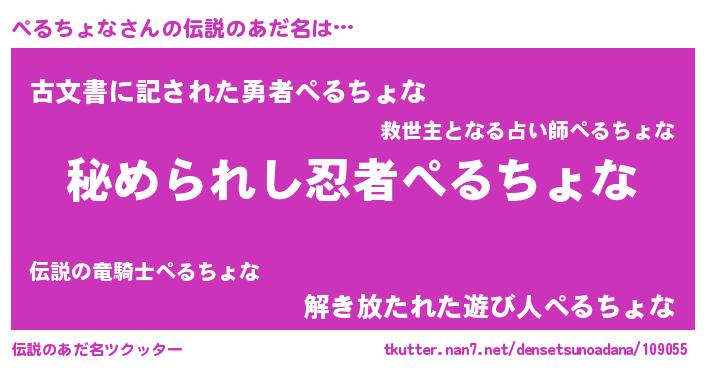 | 意味不明あだ名 | 『ぺるちょなフォーエバー』 |