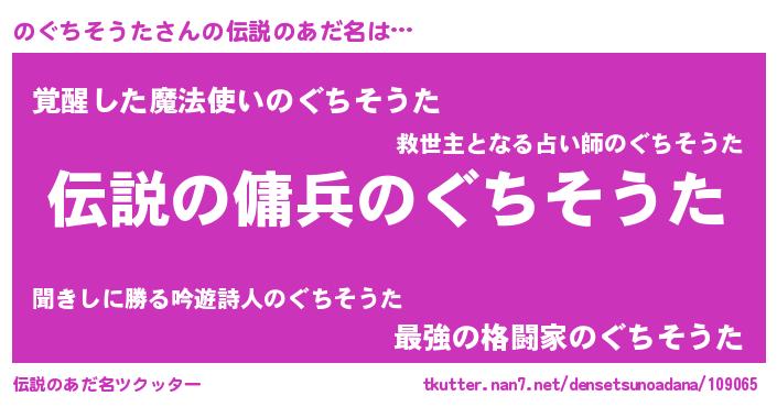 | 男性向けラノベタイトル風あだ名 | 『魔弾の王とのぐちそうた』 |