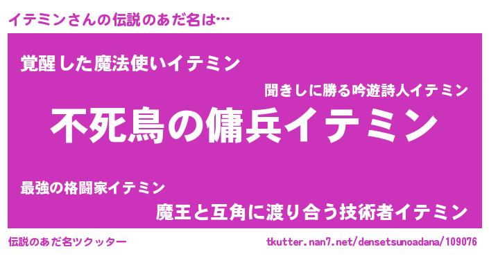 | ヒーロー風カッコイイあだ名 | 『最強戦士イテミン』『スーパーイテミン』 |