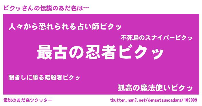 | 意味不明あだ名 | 『ビクッフォーエバー』『自称ビクッ』 |