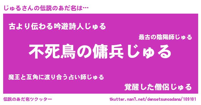 | 男性向けラノベタイトル風あだ名 | 『転生したらじゅるだった件』 |