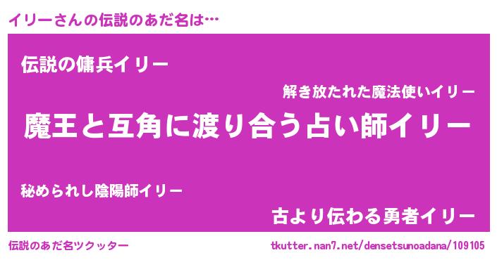 | 女子向けラノベタイトル風あだ名 | 『イリー恋絵巻』『イリーの玉の輿計画!』 |