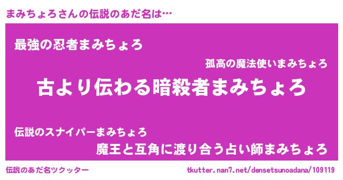 | ヒーロー風カッコイイあだ名 | 『ネオマミチョロ』『黄金騎士マミ』 |