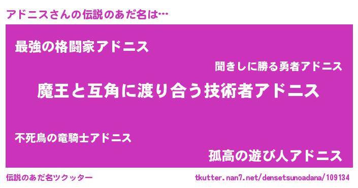 | ヒーロー風カッコイイあだ名 | 『友情の使者アドニス』『暗黒騎士アド』 |