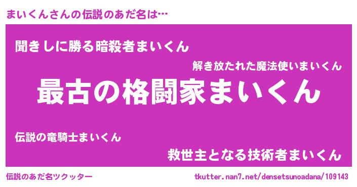 | ヒーロー風カッコイイあだ名 | 『ウルトラまいくんマン』『ネオマイクン』 |