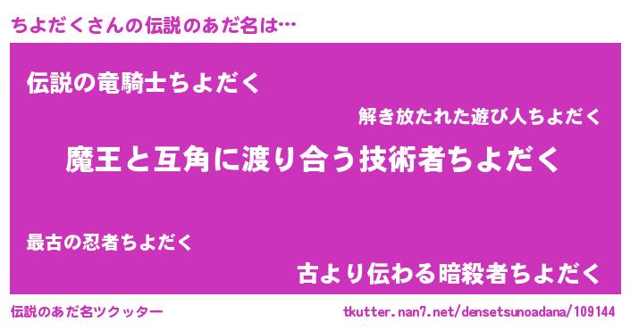 | ヒーロー風カッコイイあだ名 | 『愛の使者ちよだく』『スーパーチヨダク』 |