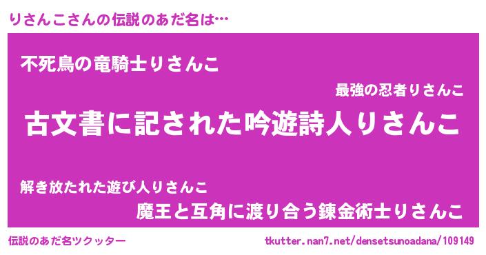 | 男性向けラノベタイトル風あだ名 | 『うちのりさんこが世界を掌握している!』 |