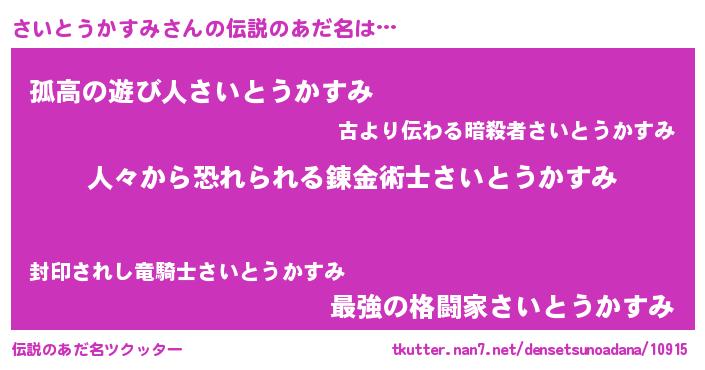 | ヒーロー風カッコイイあだ名 | 『正義の使者さいとうかすみ』 |