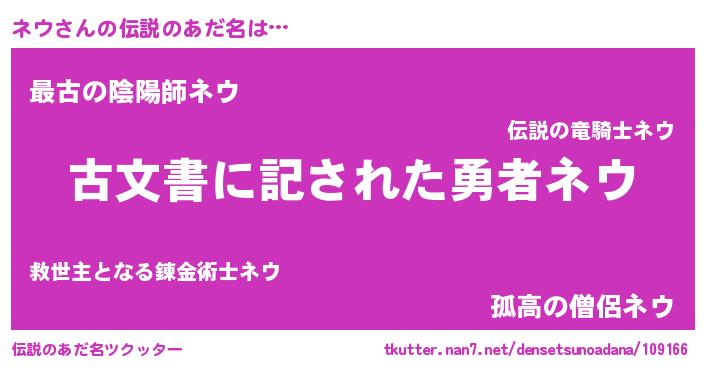 | ファンタジー風あだ名 | 『ネウディッシュ』『エターナルネウー』 |