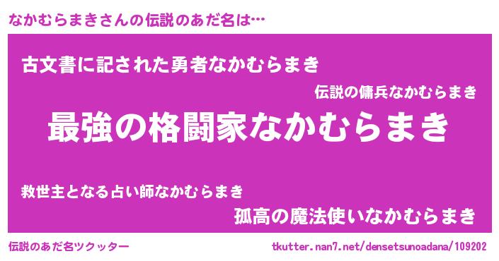 | 意味不明あだ名 | 『住所不定無職なかむらまき(7歳)』 |