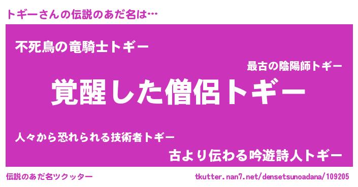 | ヘコむあだ名 | 『トギ太郎』『トギにー』『なまこ酢』 |